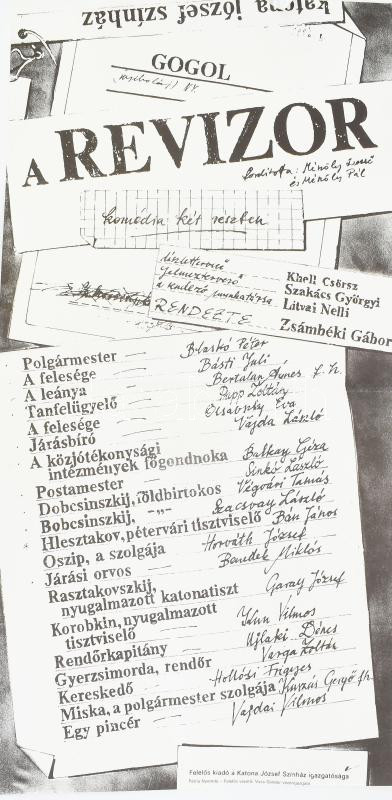 1987 Gogol A revizor. Katona József színház plakát grafika Khell Csörsz. 32x60 cm