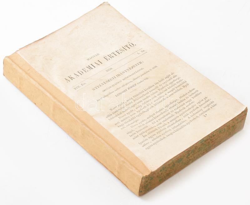 1859 Magyar Akadémiai Értesítő. XIX. évfolyam 1-6. szám egybekötve pap... https://www.darabanth.com/en/471-Online-auction/471.0/Art-and-other-collectibles/Printed-Materials~1000015/1859-Magyar-Akademiai-Ertesito-XIX-evfolyam-1-6-szam-egybekotve-papirgerinccel-Nyelvesz~II3093700