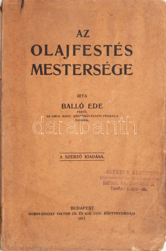 Balló Ede: Az olajfestés mestersége. Bp., 1917, a szerző kiadása. Első... https://www.darabanth.com/en/471-Online-auction/471.0/Books/Books-Architecture-Art~1000023/Ballo-Ede-Az-olajfestes-mestersege-Bp-1917-a-szerzo-kiadasa-Elso-kiadas-116-p-Kiadoi~II3193237