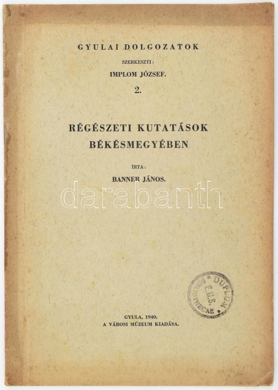 Banner János: Régészeti kutatások Békésmegyében. Gyulai Dolgozatok 2. ... https://www.darabanth.com/en/471-Online-auction/471.0/Books/Books-History~5500006/Banner-Janos-Regeszeti-kutatasok-Bekesmegyeben-Gyulai-Dolgozatok-2-Gyula-1940-Varosi-M~II3187638