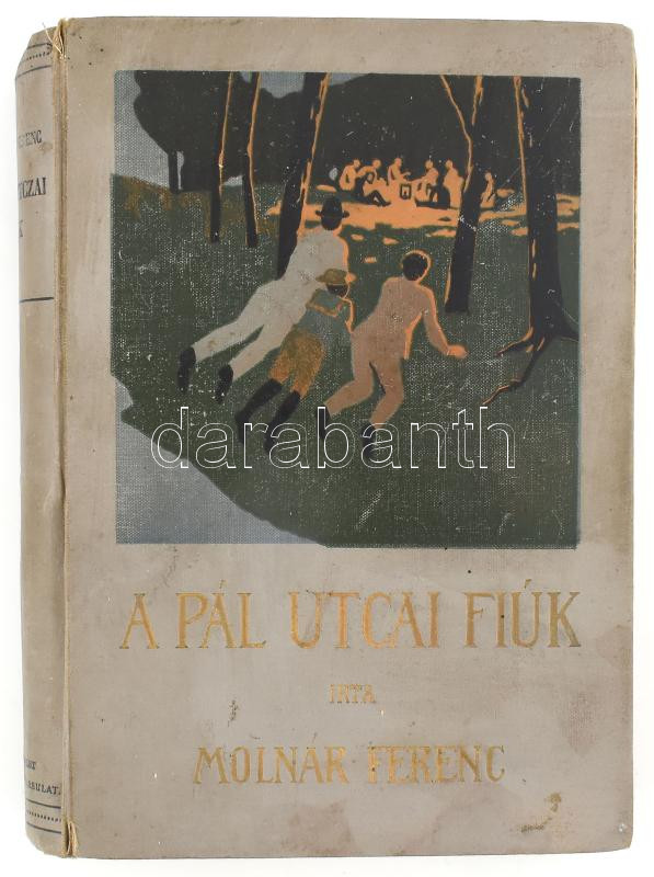 Molnár Ferenc: A Pál-utcai fiúk. Regény kis diákok számára. Bp., é.n. [1907?], Franklin-Társulat, 242 p.+ 8 t. Szövegközti és egészoldalas, fekete-fehér illusztrációkkal. Kiadói aranyozott, festett egészvászon-kötés, kissé foltos, kopottas borítóval, kissé sérült, deformált gerinccel, helyenként kissé foltos lapokkal, sérült, részben szétvált fűzéssel, egy kijáró képtáblával. Az előzéklapon, ill. a címlapon tulajdonosi névbejegyzésekkel, bélyegzőkkel: ,,Hodorovits Tibor, 1914-15, Nagykarácsony", ill. ,,Hetés György".