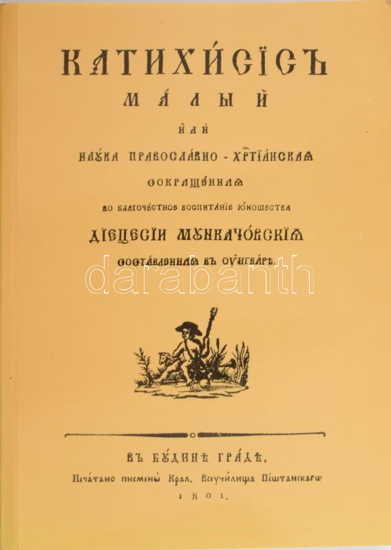 Description: Katykhysis malyi: lylnauka pravoslavno-krtianskae. (...) Nyíregyháza, 1997, Bessenyei György Tanárképző Főiskola Ukrán és Ruszin Filológiai Tanszéke. Buda, 1801. évi kiadás hasonmása. Kutka János katekizmusa, ruszin kulcsmű. Kiadói papírkötés, kötés ragasztása kissé elvált.