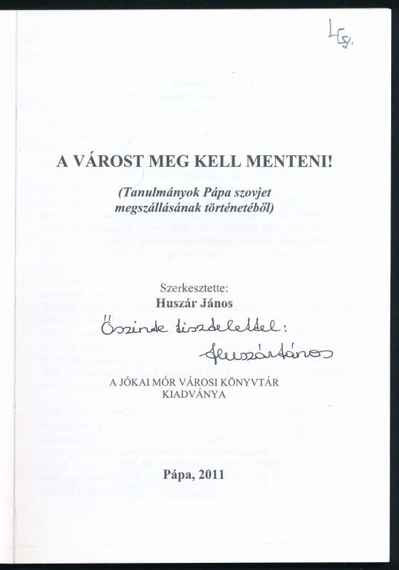 Huszár János 2 db Pápa helytörténeti műve (az egyik DEDIKÁLT): A város... https://www.darabanth.com/en/471-Online-auction/471.0/Books/Books-Travelling-Local-History~5500009/Huszar-Janos-2-db-Papa-helytorteneti-muve-az-egyik-DEDIKALT-A-varost-meg-kell-menteni-T~II2999792