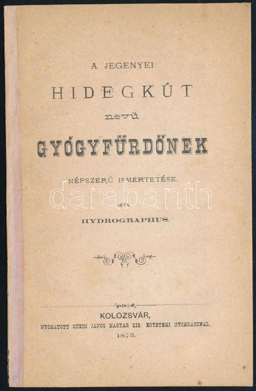 https://www.darabanth.com/en/471-Online-auction/471.0/Books/Books-Travelling-Local-History~5500009/Hydrographus-A-jegyenyei-Hidegkut-nevu-gyogyfurdonek-nepszeru-ismertetese-Kolozsvar-1875~II3032243