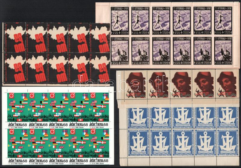 5 különféle külföldi levélzáró többes összefüggésekben. kisívekben / poster stamps