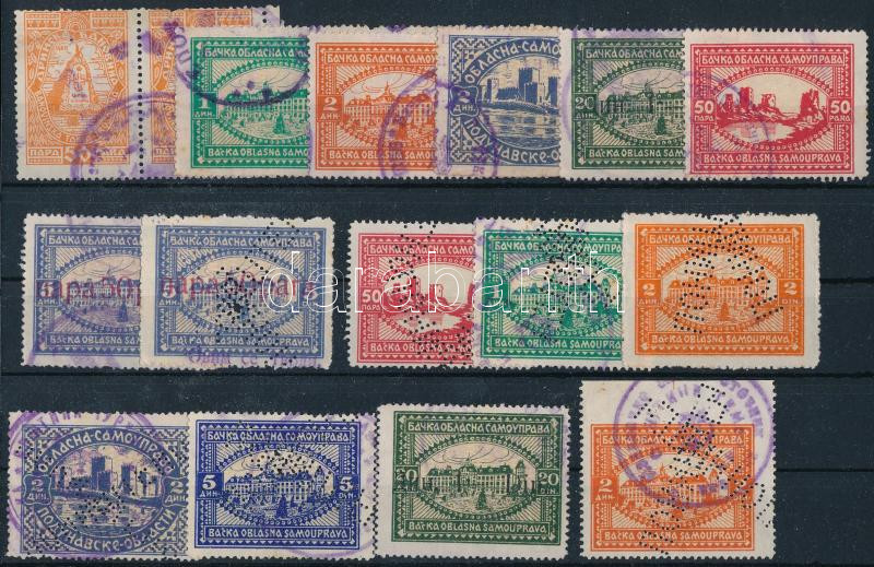 Jugoszlávia 16 db Okmánybélyeg - normál, céglyukasztásos + 1 db elfogazott