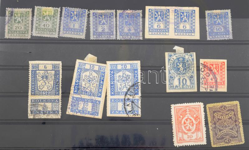 cca 1945 Csehszlovák illetékbélyeg összeállítás berakólapon / Czechoslovakian document stamps