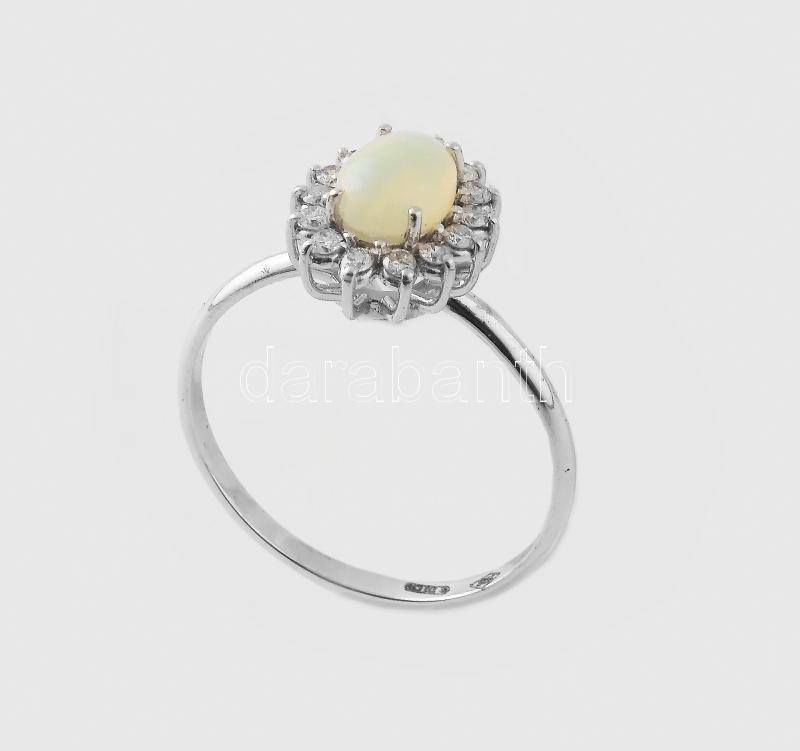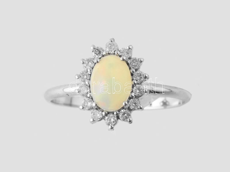 14K fehérarany gyűrű 028 ct opállal és gyémántokkal 0,3ct, jelzett, 1,...