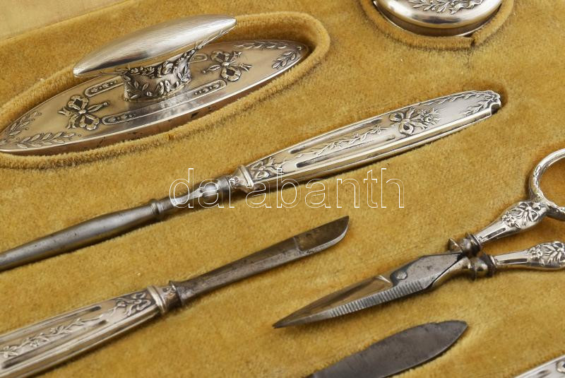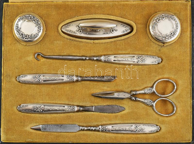 https://www.darabanth.com/en/471-Online-auction/471.0/Jewellery-and-precious-metal-items/Jewellery-and-precious-metal-items~1000038/Ezust-Ag-nyelu-es-boritasu-manikur-keszlet-ezust-Ag-tegelyekkel-kisse-serult-disz~II2964660