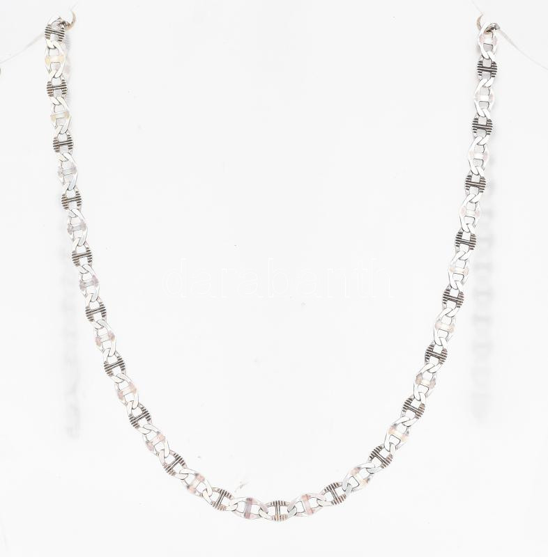 Ezüst(Ag) bordázott pálcikás nyaklánc, jelzett, h: 48 cm, nettó: 9,5 g