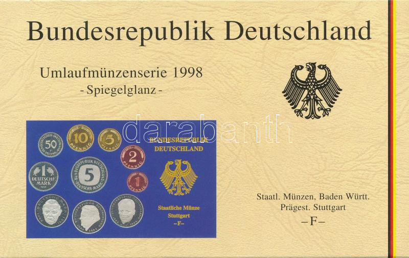 NSZK 1998F 1pf-5M (10xklf) forgalmi sor műanyag dísztokban, külső kart... https://www.darabanth.com/en/471-Online-auction/471.0/Numismatics/Foreign-Coin-sets~1500017/NSZK-1998F-1pf-5M-10xklf-forgalmi-sor-muanyag-disztokban-kulso-karton-tokkal-TPP--FRG-1998F~II3175795