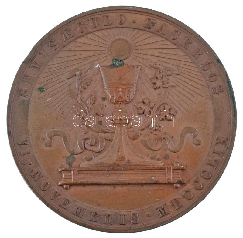 Description: Carl Radnitzky (1818-1901) 1859. "Scitovszky János esztergomi bíboros" bronz emlékérem. "JOANNES BAPT CARD SCITOVSZKY PRINC PRIMAS AEPPUS STRIGON / SEMISAECULO SACERDOS VI. NOVEMBRIS MDCCCLIX". Szign.: Carl Radnitzky (45mm) T:XF ph., patina / Habsburg Monarchy 1859. "János Scitovszky cardinal of Esztergom" bronze commemorative medallion. Sign.: Carl Radnitzky (45mm) C:XF edge error, patina
