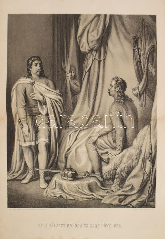 https://www.darabanth.com/en/471-Online-auction/471.0/Paintings-and-graphics/Engravings~500004/Bela-valaszt-korona-es-kard-kozott-1059-Nagy-meretu-litografia-ca-1860-Marastoni-Jozsef-~II3172892