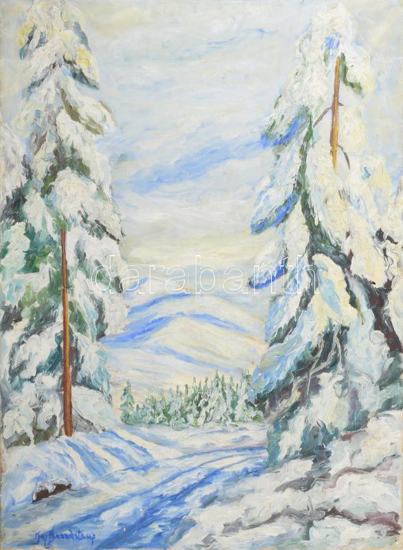 Brandstrup jelzéssel: Téli táj. Olaj, vászon. Sérült. 91×67 cm.