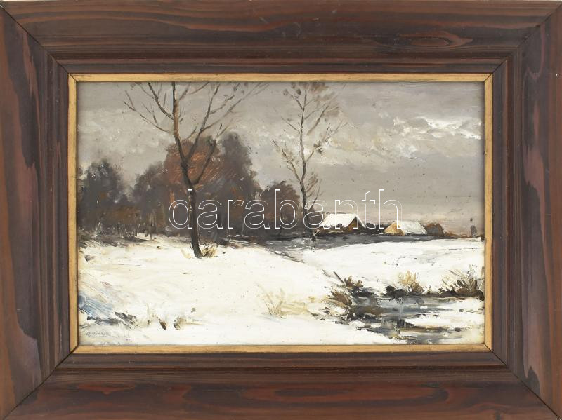 G Viktor jelzéssel: Behavazott táj. Olaj, fa. 20x30 cm. Fakeretben