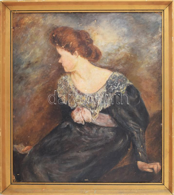 Jelzés nélkül: Elegáns hölgy portréja. Olaj, karton. Sérült (felületi ...