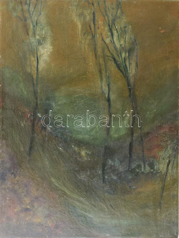Jelzés nélkül: Erdei táj. Olaj, vászon. Hátoldalán (román?) kiviteli bélyegzővel. 80×60 cm