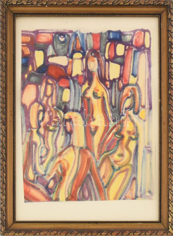 Jelzés nélkül: Női aktok. Akvarell, papír. Lap tetején kisebb szakadással. Dekoratív, üvegezett fakeretben. Hátoldalán "1962 Hárem C Mejer" felirattal. 33x27 cm