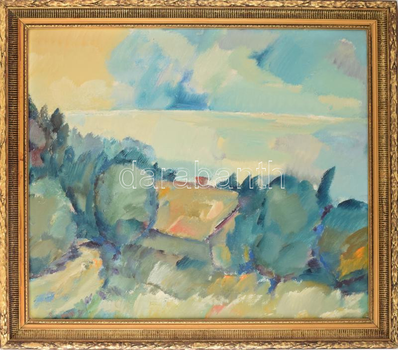 https://www.darabanth.com/en/471-Online-auction/471.0/Paintings-and-graphics/Paintings-and-graphics-quot-signedquot-or-quot-without-signquot-~500002/Jelzes-nelkul-Szinekben-pompazo-vizparti-taj-Olaj-farost-Dekorativ-kisse-serult-fak~II3189560