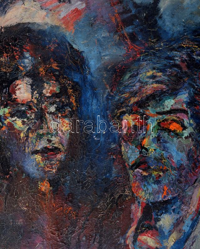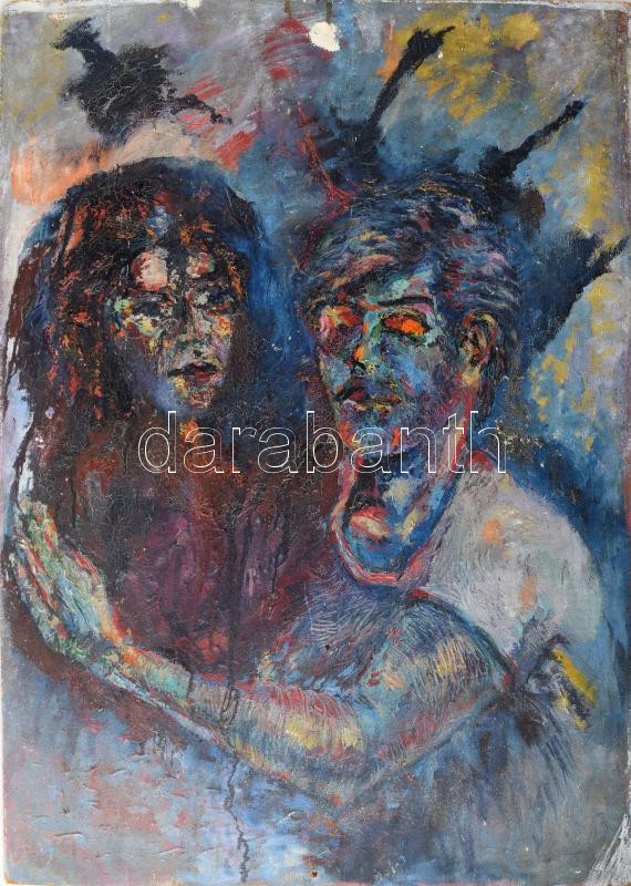 Jelzés nélkül: Színes páros. Olaj, farost, sérült. 97,5x70 cm.