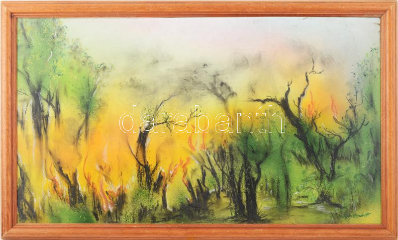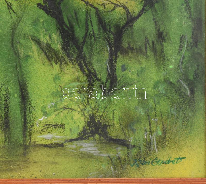 K Kari Erzsébet jelzéssel (Kemény Kari Erzsébet ?): Hangulatos táj. Vegyes technika, farost, fakeretben, 40×70 cm
