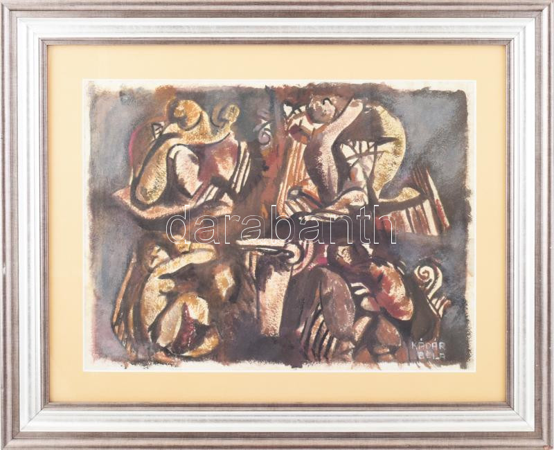 Kádár Béla jelzéssel: Alakok. Vegyes technika, papír. Üvegezett fakere...