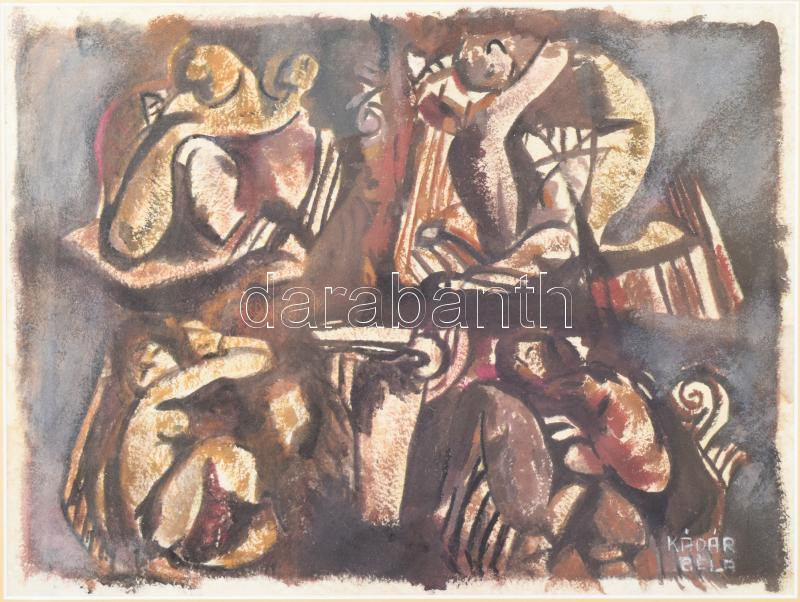 Kádár Béla jelzéssel: Alakok. Vegyes technika, papír. Üvegezett fakeretben. 30x40 cm