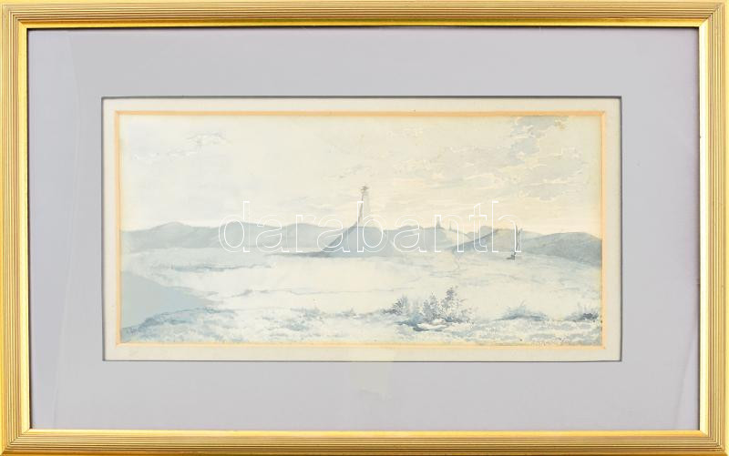 Kön... 898 jelzéssel: A világosi csatamező a Petőfi emlékkel. Akvarell, papír. Jelzett, üvegezett keretben 17x30 cm