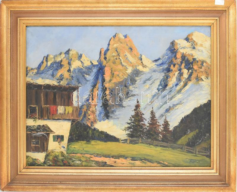 Megyery jelzéssel: Alpesi táj. Olaj, vászon, dekoratív fakeretben, 60x...