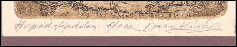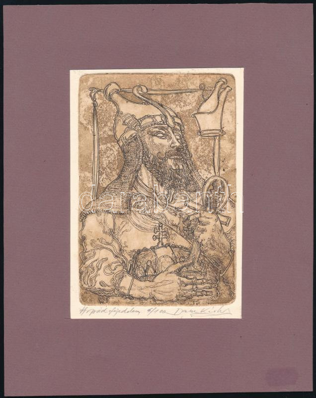 Olvashatatlan jelzéssel: Árpád fejedelem. Rézkarc, papír. Számozott: 6/100. Paszpartuban. 15×10 cm.