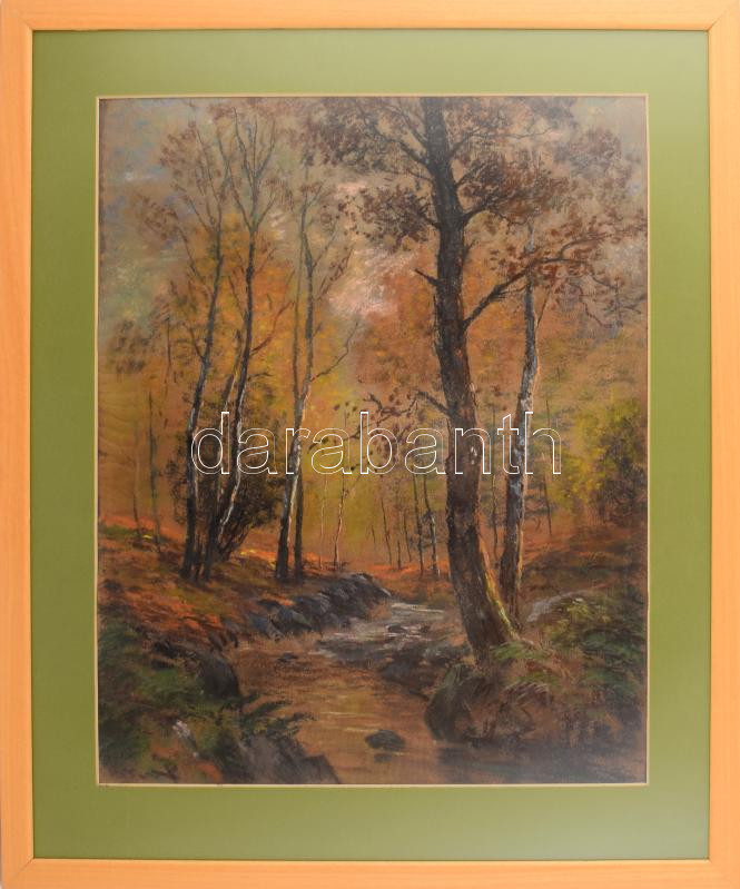 Olvashatatlan jelzéssel: Erdőbelső. Pasztell, papír, plexiüvegezett fakeretben, 49×39 cm