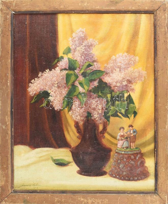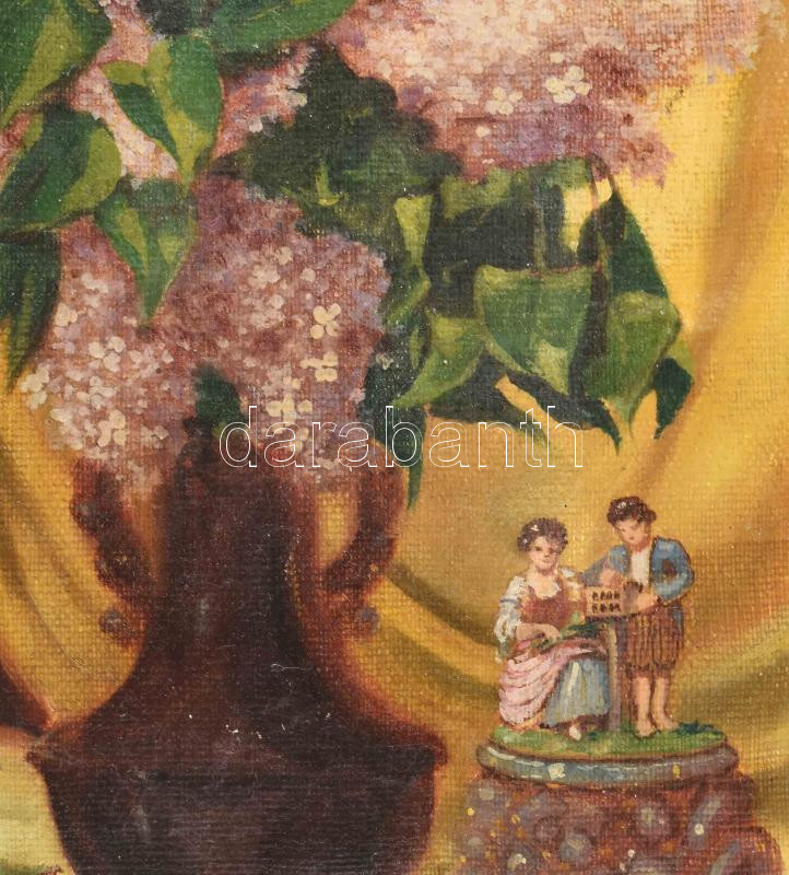 Olvashatatlan jelzéssel, XX. sz. első fele: Csendélet. Olaj, vászon, fakeretben, 50×40 cm