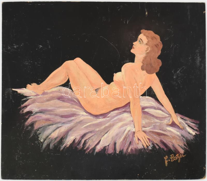 Patzer jelzéssel: Fekvő női akt. Olaj, farost. Apró felületi sérülések...