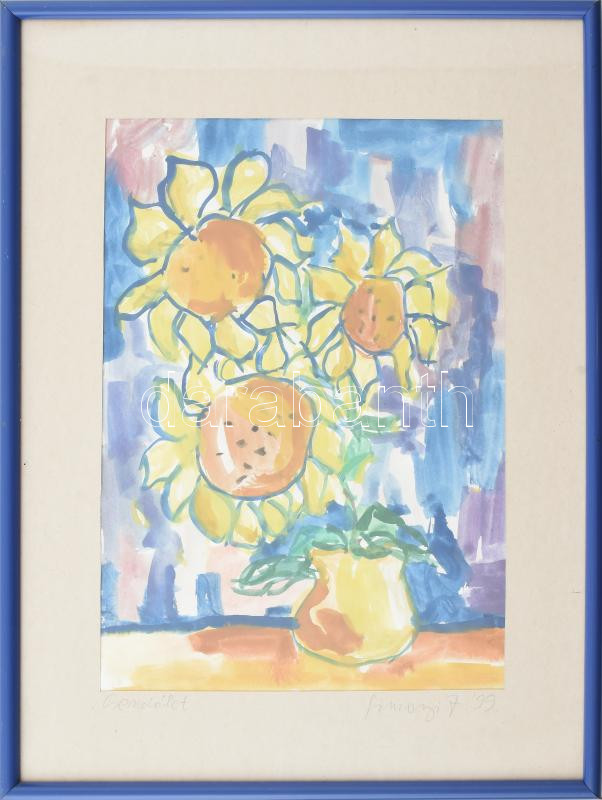 Simonyi J jelzéssel: Csendélet. Akvarell, papír, üvegezett keretben, 2...