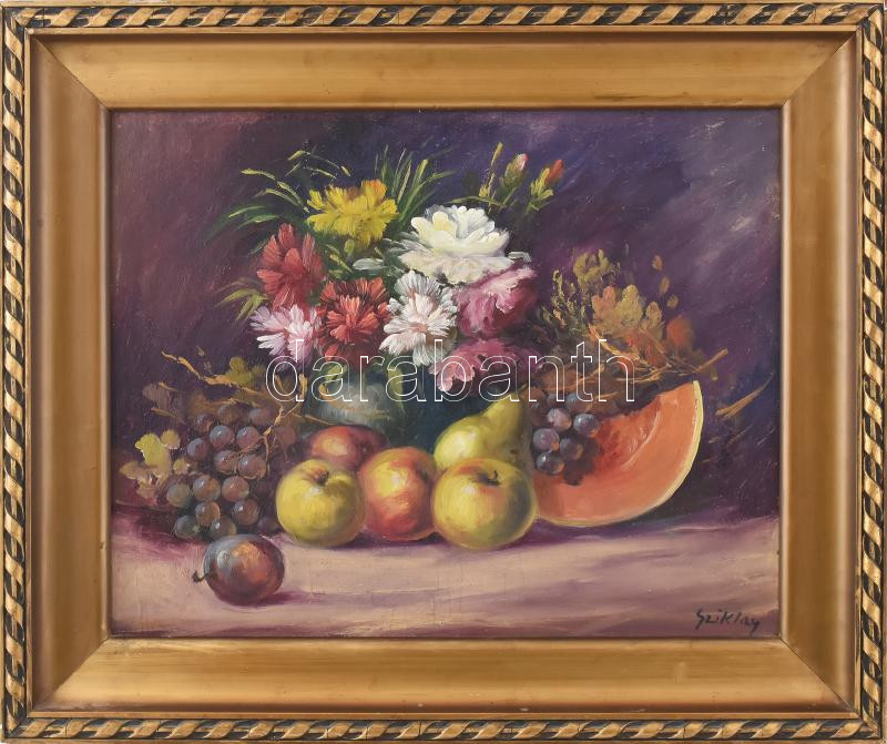 Sziklay jelzéssel: Csendélet. Olaj, karton. Dekoratív fakeretben. 40x5...