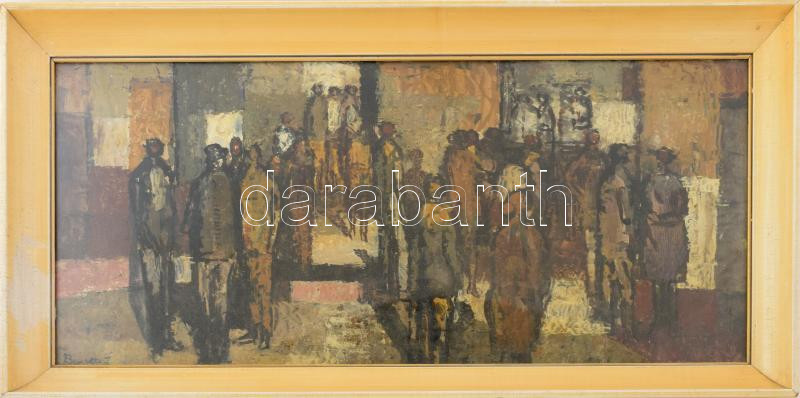 Bencze László (1907-1992): Kompzíció. Olaj, farost, jelezve balra lent. Hátoldalán Képcsarnok Vállalat címkéjével. Üvegezett fakeretben, 30×65 cm