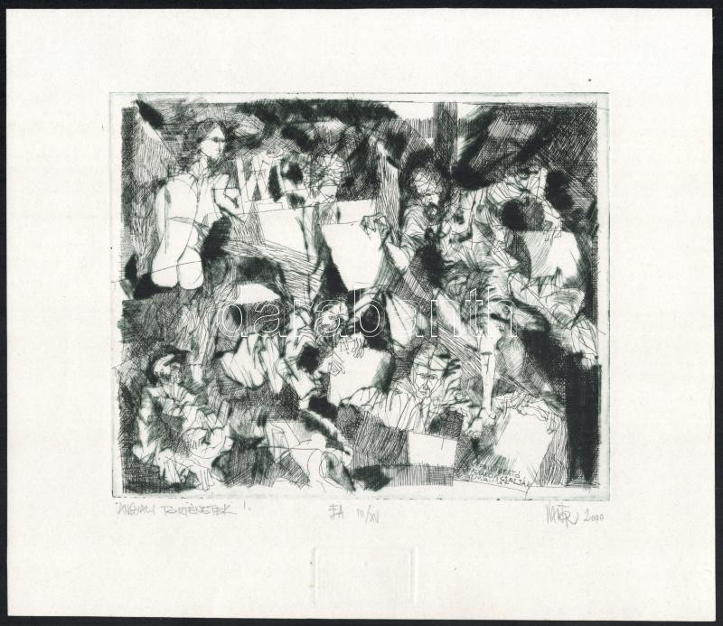 Kántor János (1947-2018): Angyali történetek I., 2000. Rézkarc, papír,...