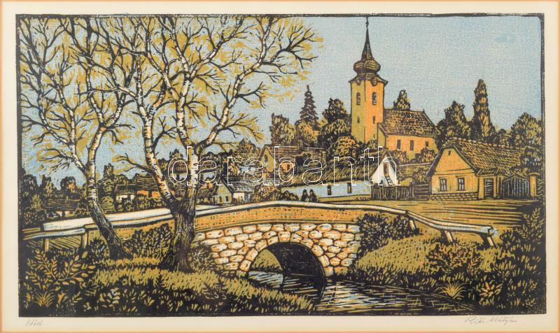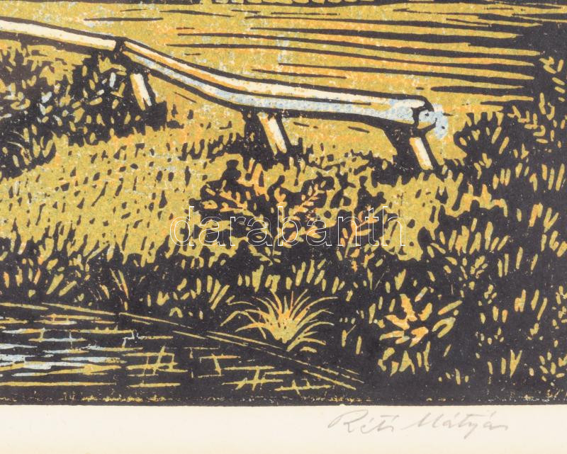 Réti Mátyás (1922-2002): Híd. Színes linómetszet, papír, jelzett, üveg...