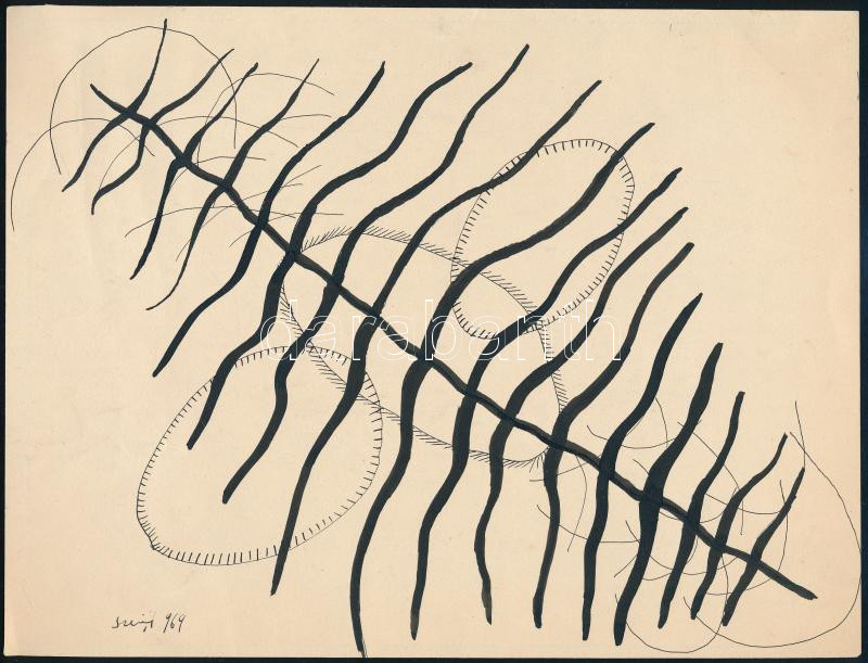 Szeift Béla (1944-2012): Vizek mélyén, 1969. Tus, papír, jelzett, 19×2...
