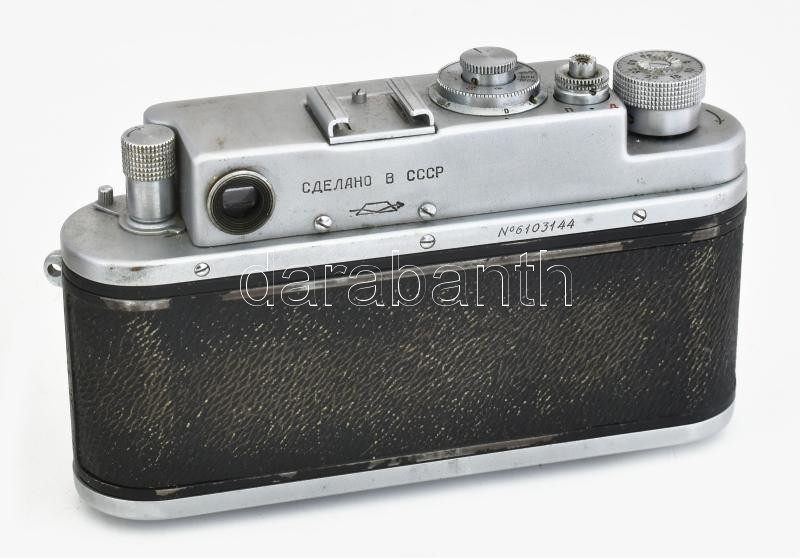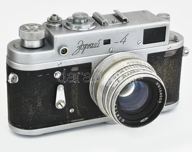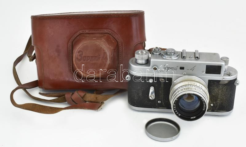Zorkij-4 retro szovjet fényképezőgép, Jupiter 8 2/50 objektívvel, eredeti bőr tokjában, dohos lencsével