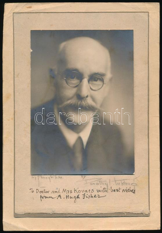Dorothy Hickling (1880-1946): Alfred Hugh Fisher (1867-1945) angol realista festőművész portréfotója, a művész által dedikálva, a fotós aláírásával jelezve / Dorothy Hickling (1880-1946): portait of Alfred Hugh Fisher (1867-1945), an influential English realist painter known for his mastery in depicting the intricate details of everyday life. Fisher's work is celebrated for its ability to illuminate the beauty in the ordinary, making him a significant figure in the realist art movement of his era. Dorothy Hickling, herself an artist of cultural significance, Her work, often characterized by its unique perspective and deep emotional resonance, has left a lasting impact on the art world. This photograph, dedicated by Fisher and bearing the Hickling's signature, serves as a testament to the artistic and cultural contributions of both Fisher and Hickling. 11x15 cm, 17x25 cm
