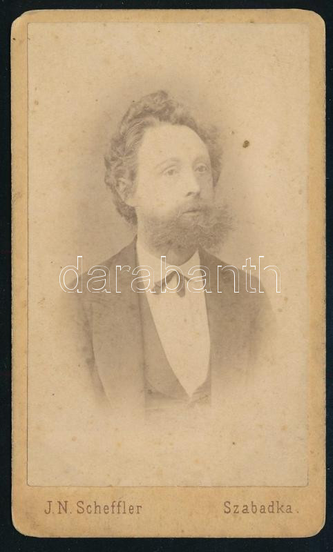 cca 1870-80 Luschek Vince zenetanár portréja, keményhátú fotó J.N. Scheffler szabadkai műterméből, hátoldalán feliratozott, 10,5x6,5 cm