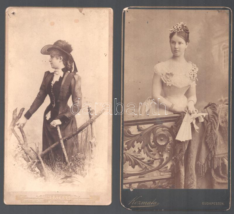 cca 1890-1900 Feltehetően színésznők portréja, 2 db keményhátú fotó Ko... https://www.darabanth.com/en/471-Online-auction/471.0/Photography/Photo~5500003/cca-1890-1900-Feltehetoen-szinesznok-portreja-2-db-kemenyhatu-foto-Kozmata-valamint-Merte~II3186101