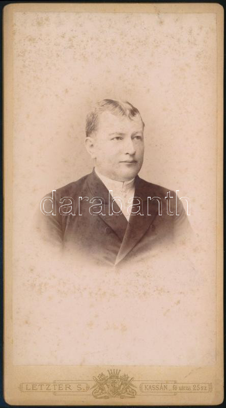 cca 1890 Férfiportré, kabinetfotó Letzter Sándor kassai műterméből, a hátoldalon feliratozva, 20,5x11 cm