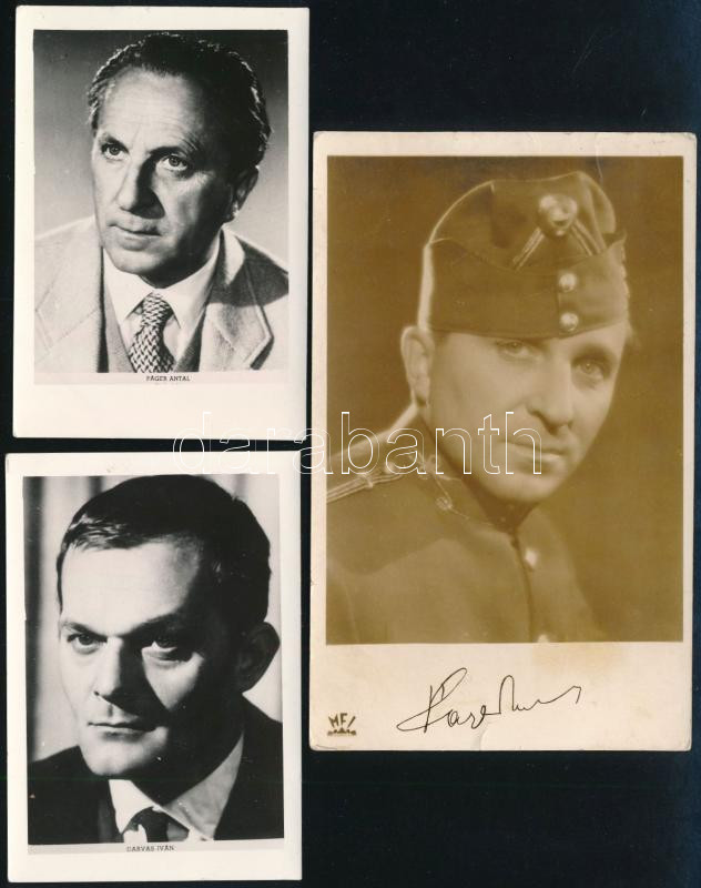 cca 1938-70 Páger Antal a Fehérvári huszárok c. filmben, MFI fotólap, 1938 k. + Páger Antal, fotó, 1960 k, 9,5x6,5 cm + Darvas Iván, fotó, 1965-70 k., 9,5x6,5 cm