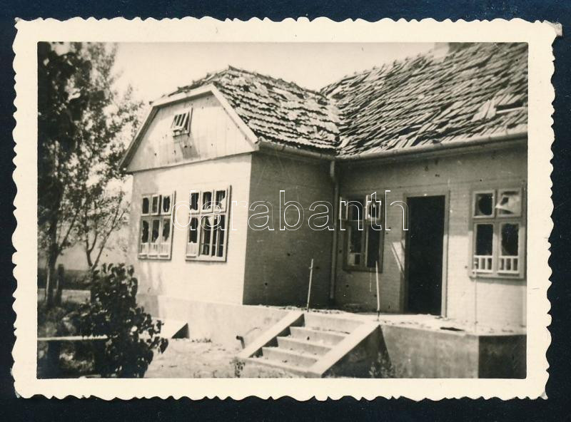 cca 1945 Szőreg, (Szeged) golyónyomok egy épületen 6x9 cm