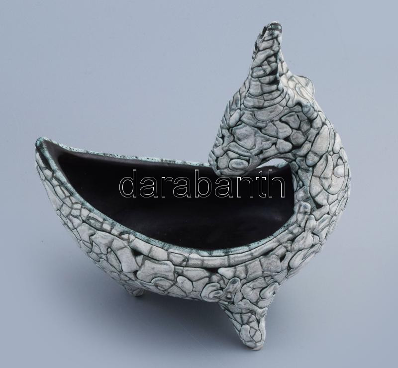 Gorka Géza (1895-1971), Iparművészeti Vállalat: Kosfejes kínáló. Jelzett, repesztett mázas kerámia, kis kopással, 16x17,5 cm
