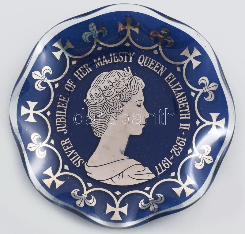 https://www.darabanth.com/en/471-Online-auction/471.0/Porcelain-ceramics-glassware/Glass-objects~500007/1977-II-Erzsebet-jubileumi-emlektal-ezust-festessel-kopassal-d-12-cm~II3096211