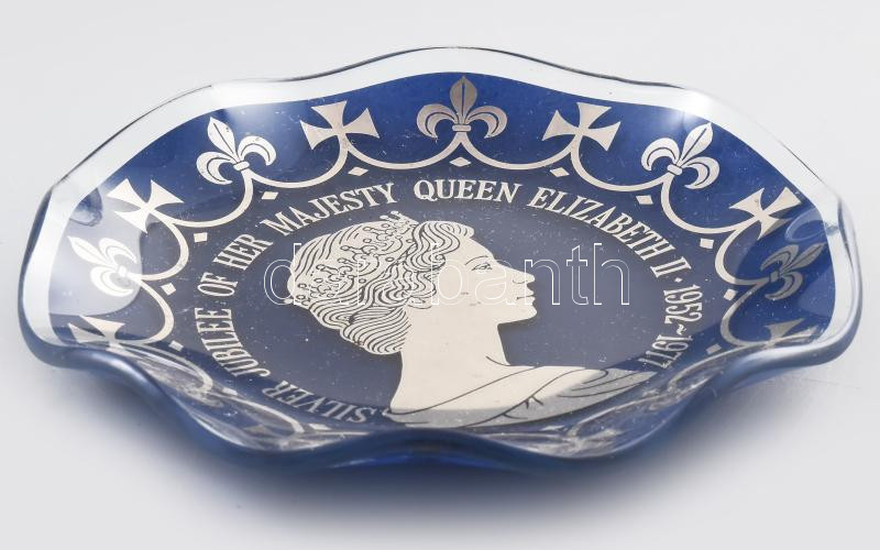 1977, II. Erzsébet jubileumi emléktál, ezüst festéssel, kopással, d: 12 cm
