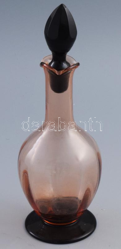 Antik színezett italos üveg, fazettált dugóval. Jelzés nélkül, m: 24,5...